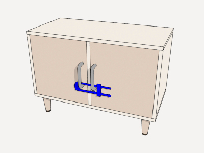 UNITÉ D'OUVRAGE FRM030: FERMETURE DE SÉCURITÉ POUR BLOCAGE D'ARMOIRE, EN PLASTIQUE ABS. MISE EN PLACE SUR LES PORTES DE L'ARMOIRE.