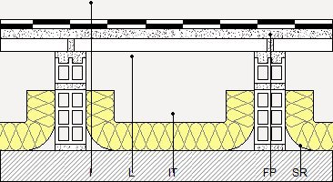 Toiture terrasse froide, inaccessible, autoprotégée, de type conventionnel, pente de 1% à 15%. FORME DE PENTES: panneau céramique creux à rainure et languette de 80x25x3,5 cm avec couche de régularisation de mortier de ciment, confectionné sur chantier, dosage 1:6, de 3 cm d'épaisseur, finition talochée, sur cloisons allégées de brique creuse en terre cuite de 29x14x9 cm, pose avec du mortier de ciment, confectionné sur chantier, dosage 1:6, disposées tous les 80 cm et avec 30 cm de hauteur moyenne, arrêts supérieurs avec des guides de mortier de ciment, confectionné sur chantier, dosage 1:6; ISOLATION THERMIQUE: feutre isolant en laine minérale; IMPERMÉABILISATION: type bicouche, adhérée, composée de membrane en bitume modifié par élastomère SBS, LBM(SBS)-30-FV, impression préalable avec émulsion bitumineuse anionique avec charges, et membrane en bitume modifié par élastomère SBS, LBM(SBS)-40/G-FP adhérée à la précédente avec un chalumeau, sans coïncidence des joints. | ||
