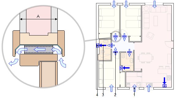 TVR030 Ouverture de passage pour ventilation, avec entrée d'air linéaire. Mise en place au niveau de la porte intérieure