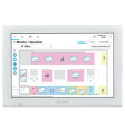 Contrôle de système, pour 50 groupes ou 50 unités intérieures d'air conditionné (400 groupes avec modules d'expansion), modèle AE-C400E "MITSUBISHI ELECTRIC", de 306x211x71,8 mm, avec écran tactile LCD de 11,1", serveur web, service de contrôle et monitorisation de l'installation à distance MELCloud Commercial et connectable au bus MNet.