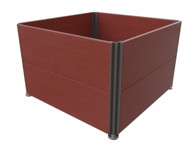Jardinière de 70x70x45 cm, avec panneaux en résine phénolique de couleur marron et structure de profilés en acier avec protection anti-oxydante et peinture de couleur noire, y compris fond de maille métallique galvanisée à chaud et bac intérieur en fibre de verre.